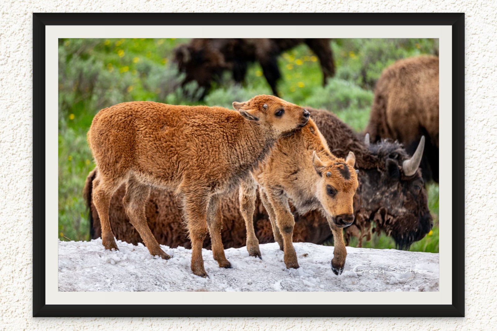 Yellowstone bison calves, often called “red dogs” due to their reddish fur, are energetic and playful as they explore the park’s vast meadows. Born in the spring, they quickly bond with the herd, staying close to their mothers for protection. These resilient young animals are a symbol of new life amidst Yellowstone’s wild landscapes.